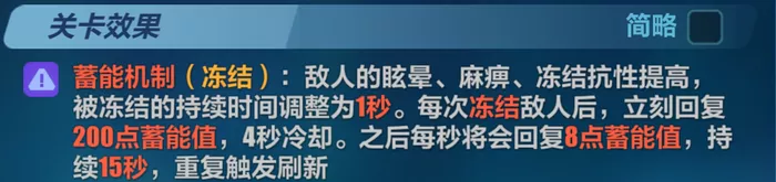 因为在关卡中冻结的持续时间被关卡机制限制到1秒,在冻结期间击杀敌人难度较高,所以不推荐利用γ芯片。仅推荐α(必杀技施加冻结)、β(敌人每秒取得冻结值)和δ(敌人被冻结后取得增伤),这样无论阵容中有没有冻结角色,都允许在战斗中迅速为敌人施加冻结积蓄,从而增强蓄能等级,提高加伤。